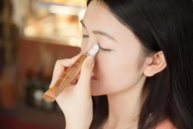 【按摩手法】用玫瑰眼霜自帶的冰感陶瓷按摩頭,從眼頭向眼尾方向輕輕按摩即可,如下圖: