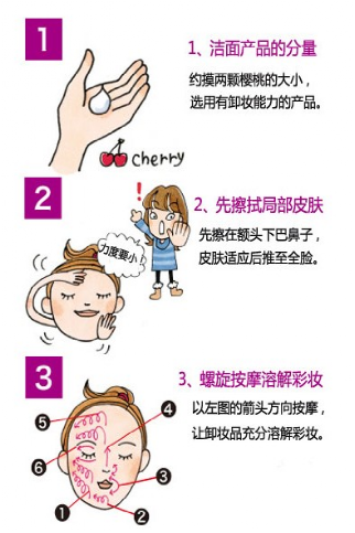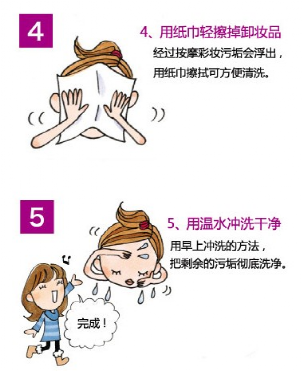 晚上洗臉重點(diǎn):徹底卸妝并按摩皮膚促進(jìn)新陳代謝。